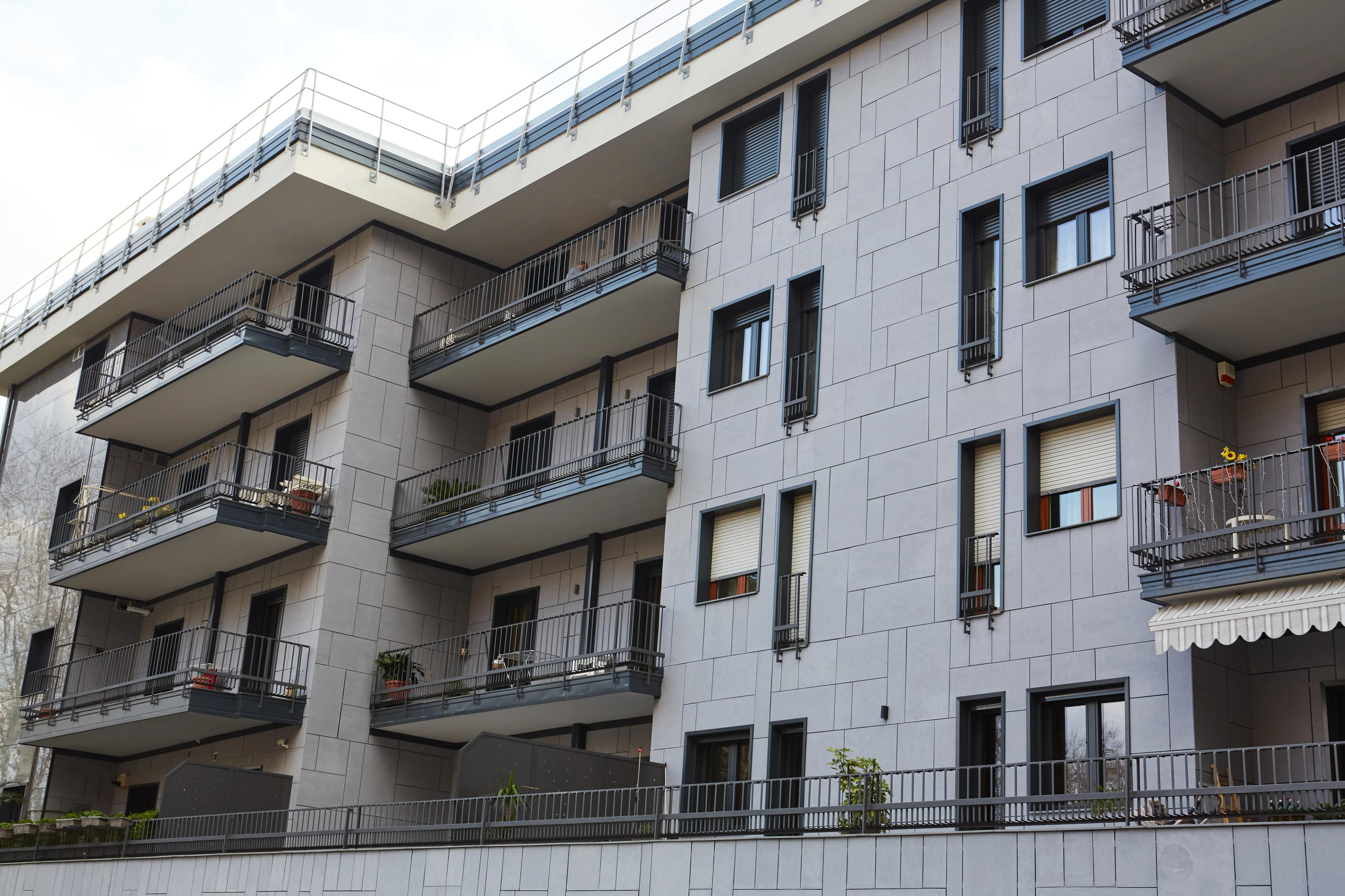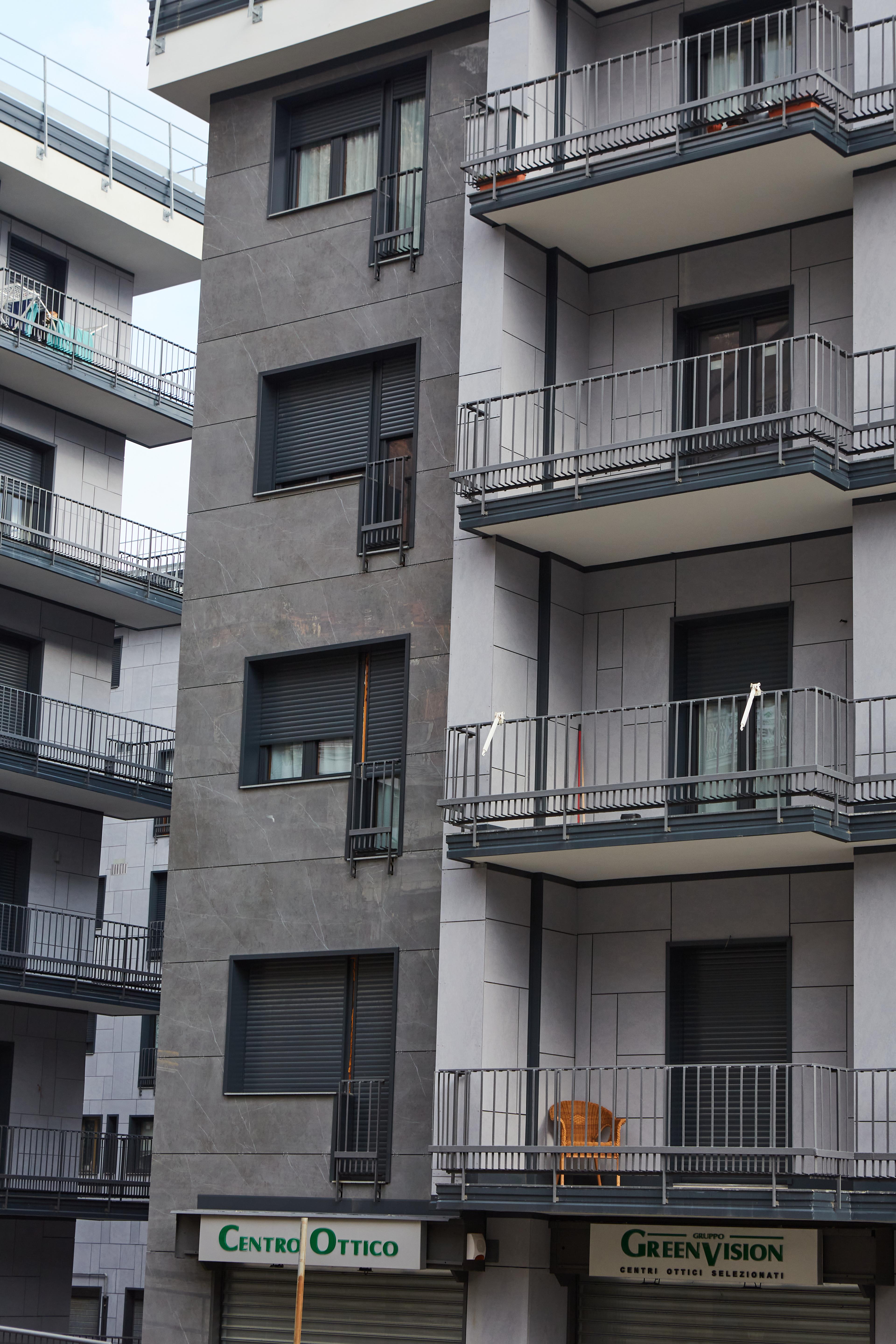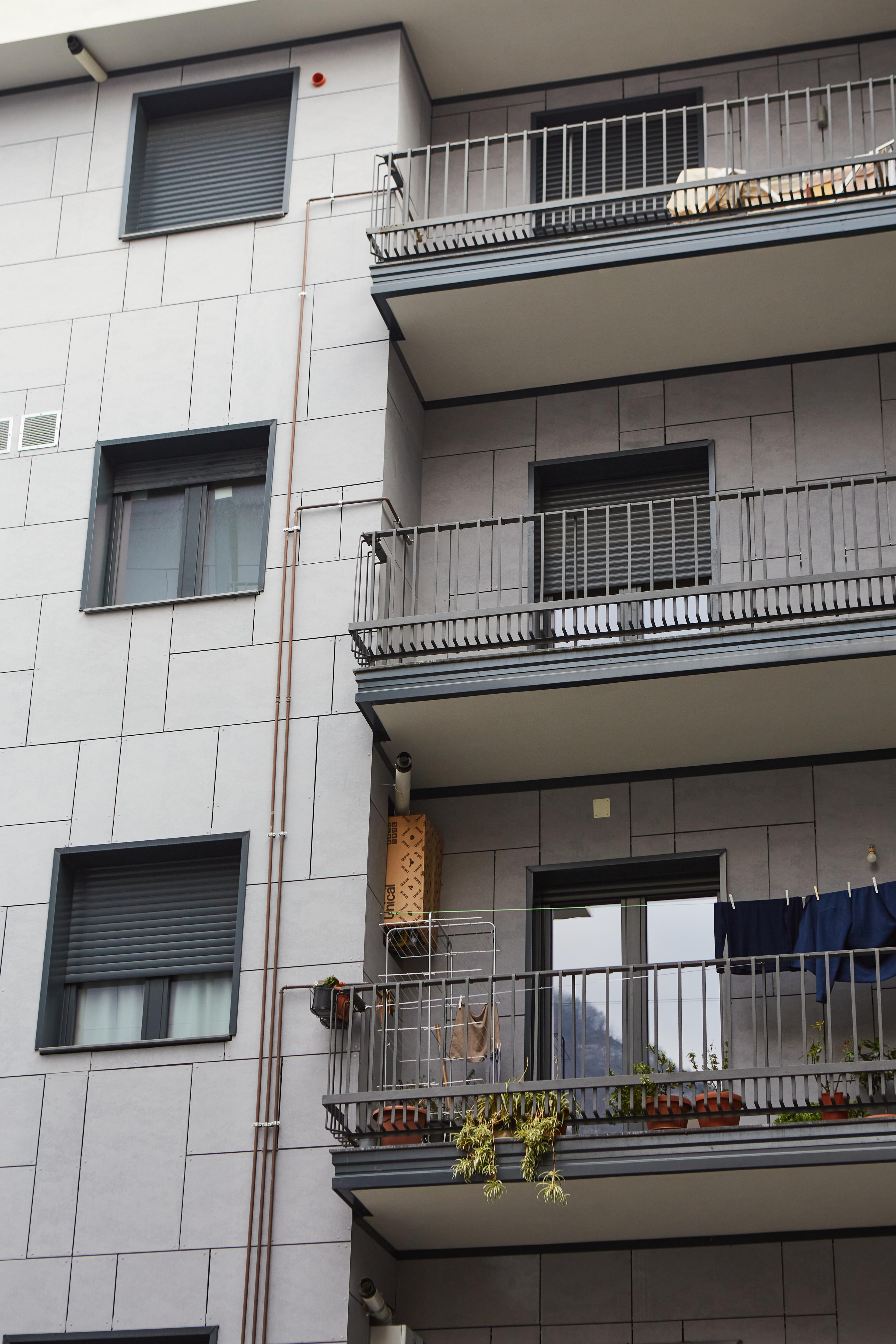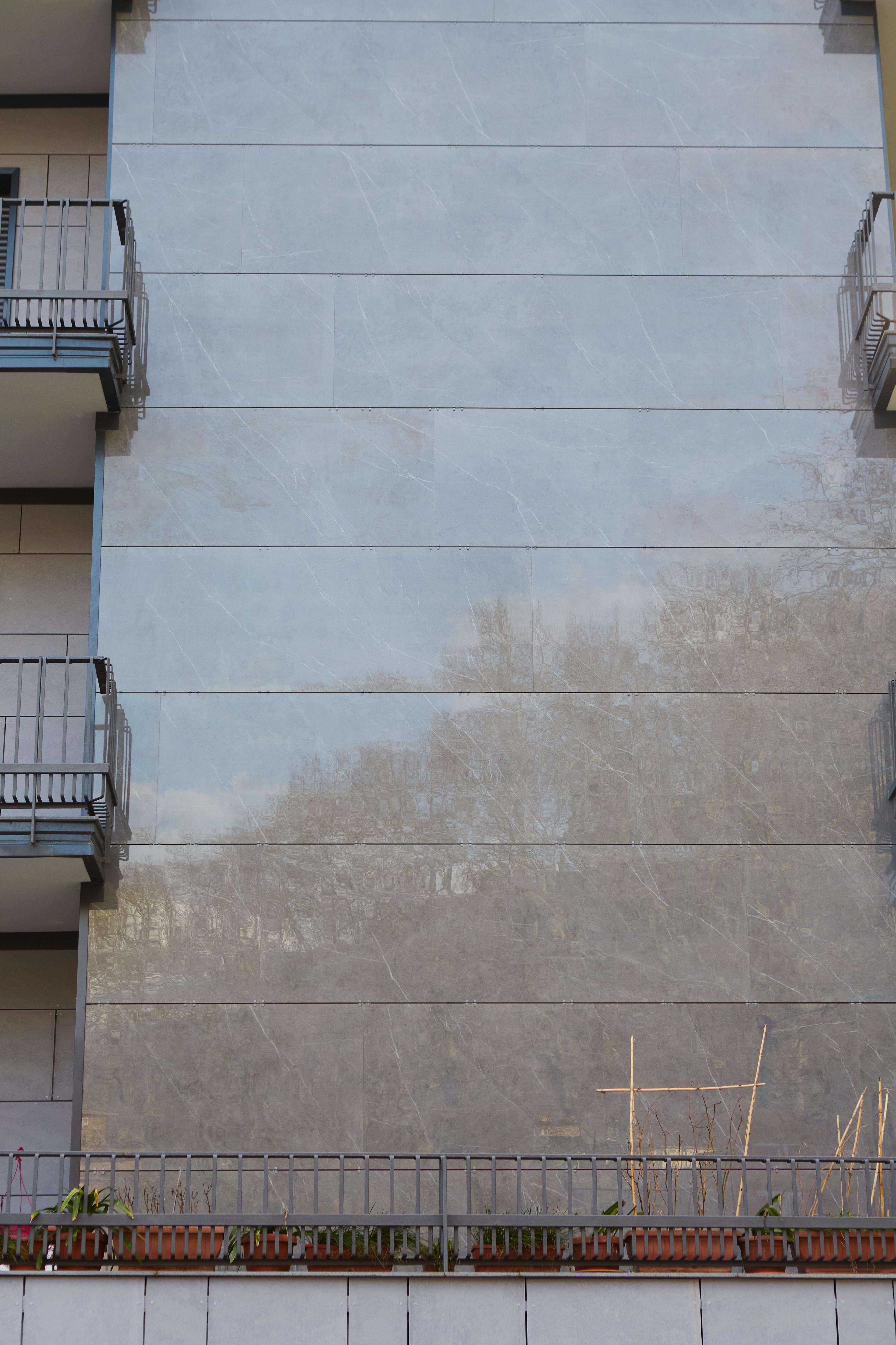 Interventi di efficientamento energetico e miglioramento sismico con cappotto strutturale e facciate ventilate montate a secco con pannelli in Equitone, Gres, Laminam, sostituzione degli infissi, adeguamento degli impianti termici e realizzazione di impianti di ventilazione meccanica controllata.